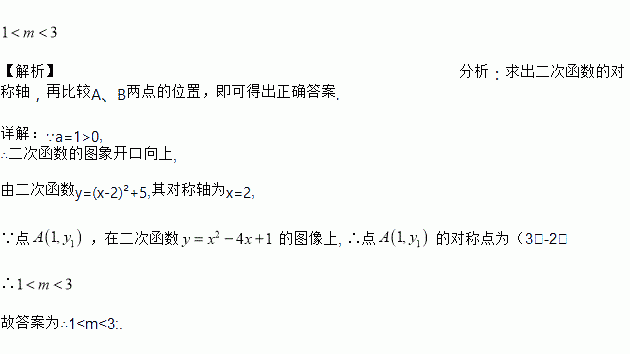 已知点, 在二次函数的图像上,且,则实数m的取值范围是______.