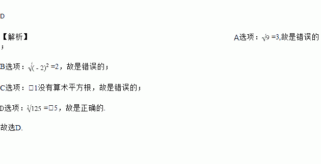 A. =±3 B. =﹣2 C. ﹣1的算术平方根是1 D. =﹣5
