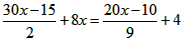去分母,得9(30x-15)+144x=2(20x-10)+72,
