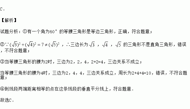 ①有一个角为60°的等腰三角形是等边三角形;