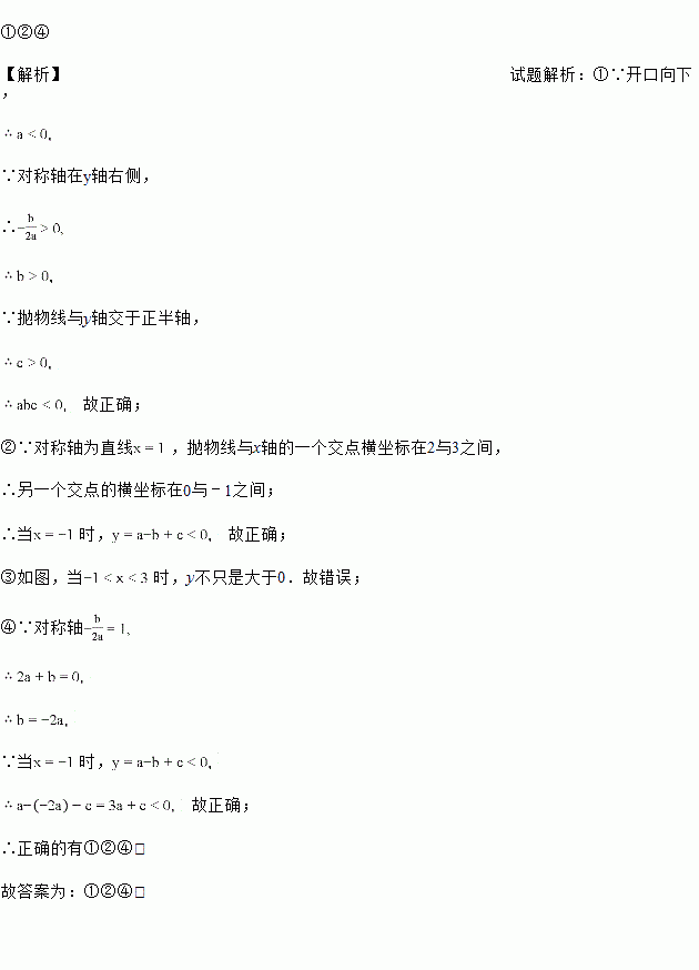 二次函数y=ax2+bx+c(a≠0)图象的对称轴是直线x=1,其图象的一部分如图所示.下列说法正确的是_____(填正确结论的序号).