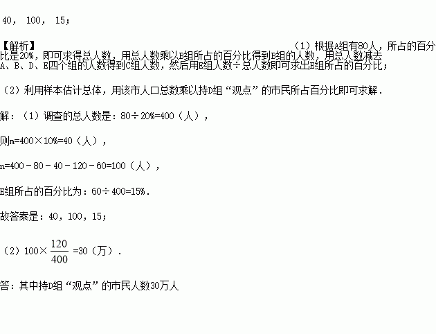 (2)若该市人口约有100万人,请你估计其中持D组“观点”的市民人数.