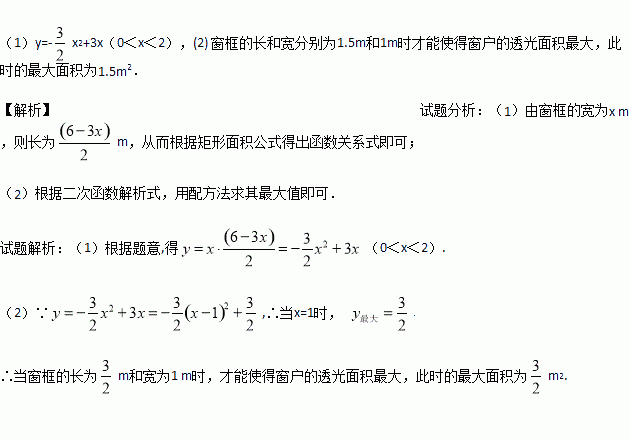 (2)如何安排窗框的长和宽,才能使得窗户的透光面积最大?并求出此时的最大面积.