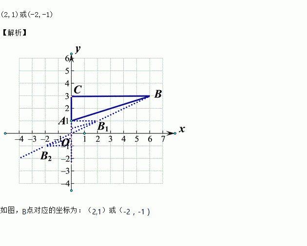 (2,1)或(-2,-1) 【解析】 如图,B点对应的坐标为:(2,1)或(-2,-1)