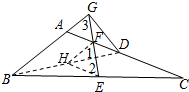 分析:连结BD,取BD的中点H,连结HF、HE,则HF是△ABD的中位线,HE是△BDC的中位线,从而判断HE=HF,从而得出∠1=∠2,判断△AGF为等边三角形,求出∠FGD=∠FDG=30°后即可得出结论.