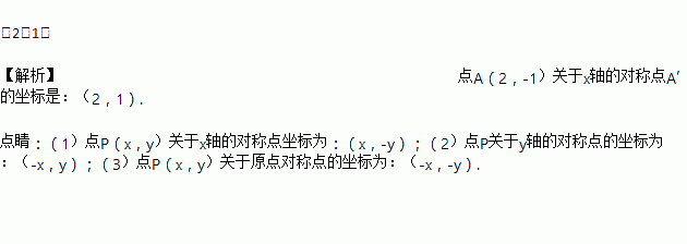 点A(2,﹣1)关于x轴的对称点A′的坐标是_____.