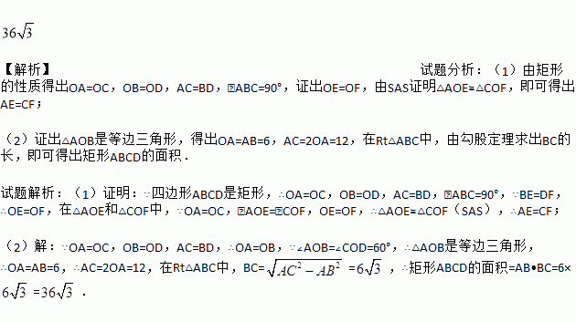 (2)若AB=6,∠COD=60°,求矩形ABCD的面积.