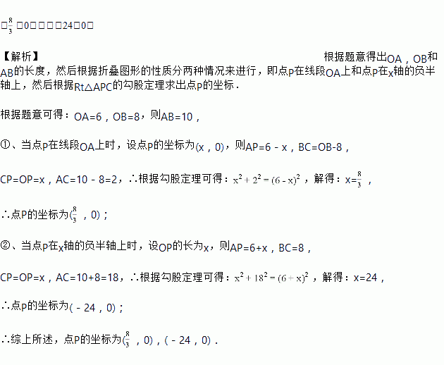 x+8的图像与x轴、y轴分别交于A、B两点.P是x轴上一个动点,若沿BP将△OBP翻折,点O恰好落在直线AB上的点C处,则点P的坐标是______.