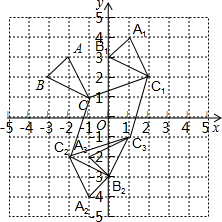 (2)利用中心对称的性质,作出A1、B1、C1,关于原点的对称点A2、B2、C2,顺次连接A2B2,B2C2、C2A2,即得到关于原点对称的三角形;