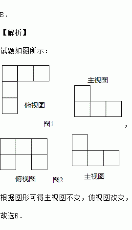 如图是由6个相同的小正方体搭成的立体图形,若由图①变到图②,则( )