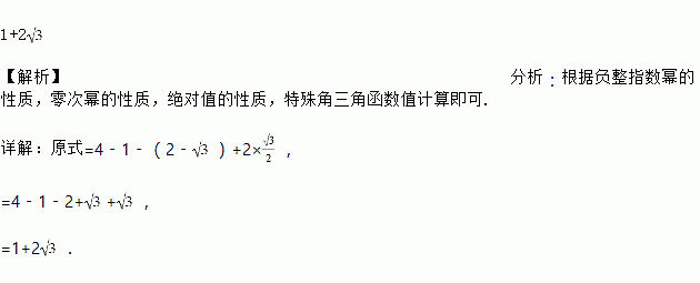 (﹣)﹣2﹣(2018﹣π)0﹣||+2sin60°
