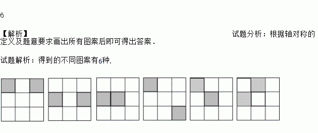 如图①是3×3的小方格构成的正方形ABCD,若将其中的两个小方格涂黑,使得涂黑后的整个ABCD图案(含阴影)是轴对称图形,且规定沿正方形ABCD对称轴翻折能重合的图案都视为同一种,比如图②中四幅图就视为同一种,则得到不同的图案共有_______________ 种.