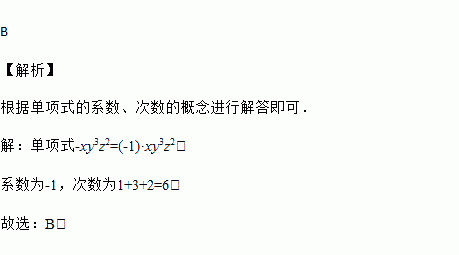 关于单项式-xy3z2,下列说法正确的是( )