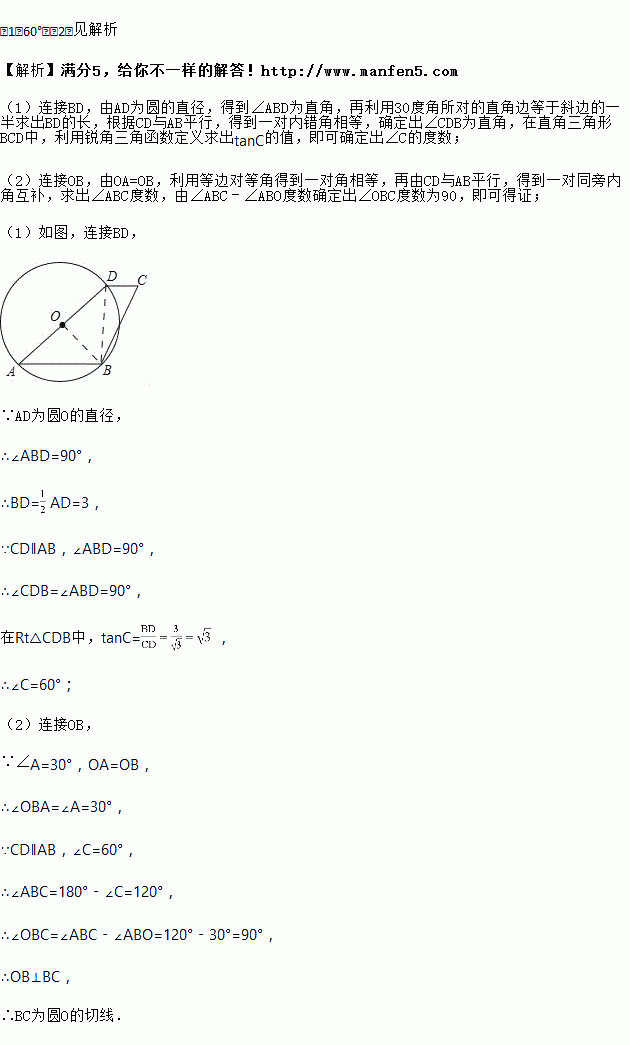 (1)求∠C的度数;