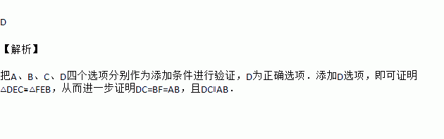 A. AD=BC B. CD=BF C. ∠A=∠C D. ∠F=∠CDE