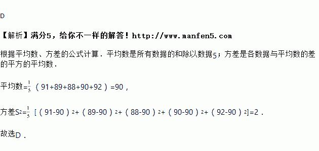 刘明在九年级第二学期进行的次数学测验中,成绩分别为:,,,,,则这次数学测验成绩分数的平均数和方差依次为( )