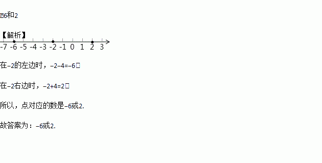 在数轴上与表示-2的数相距4个单位长度的点对应的数是_________。