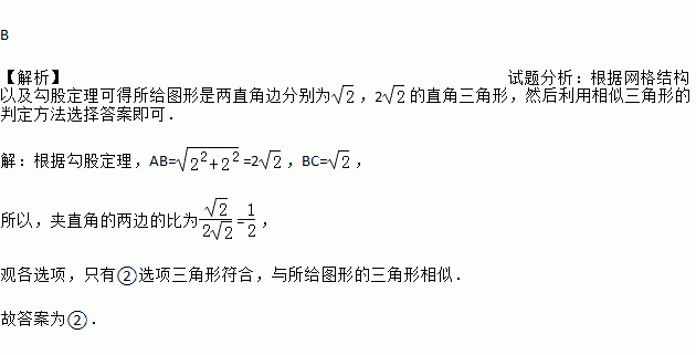 下列4×4的正方形网格中,小正方形的边长均为1,三角形的顶点都在格点上,则与△ABC相似的三角形所在的网格图形是( )