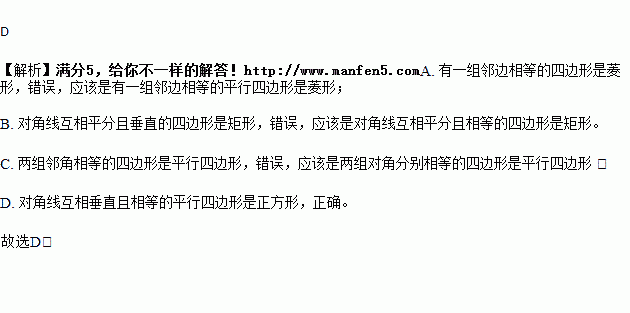D. 对角线互相垂直且相等的平行四边形是正方形