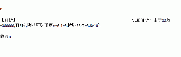 A. 38×104 B. 3.8×105 C. 0.38×106 D. 3.8×104