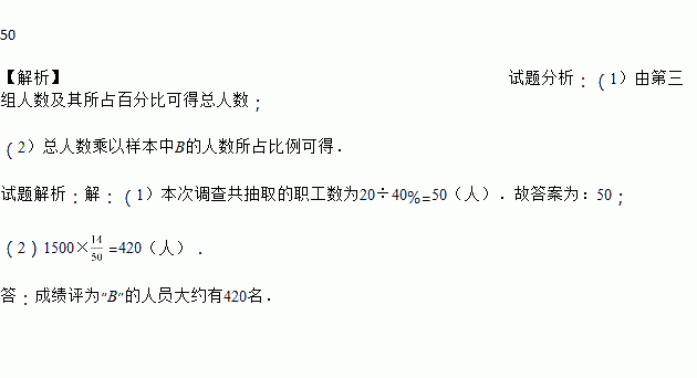 (2)若将得分转化为等级,规定:得分低于100分评为“D”,100~130分评为“C”,130~145分评为“B”,145~160分评为“A”,求该公司1500名工作人员中,成绩评为“B”的人员大约有多少名?