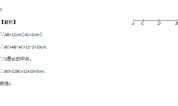 C是线段AB上一点,D是BC的中点,若AB=12cm,AC=2cm,则BD的长为()