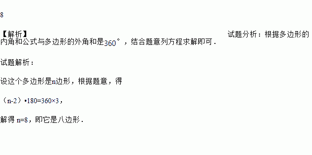 一个多边形的内角和是外角和的3倍,它是几边形?