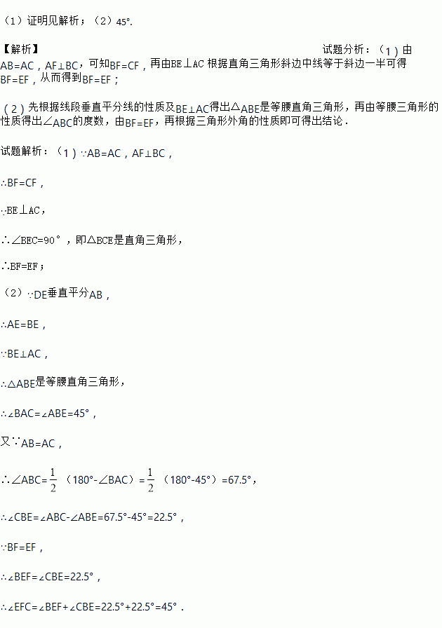 如图,在△ABC中,AB=AC,DE垂直平分AB,BE⊥AC,AF⊥BC,