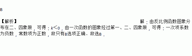 一个反比例函数与一个一次函数在同一坐标平面内的图像如图示,如果其中的反比例函数解析式为,那么该一次函数可能的解析式是( )