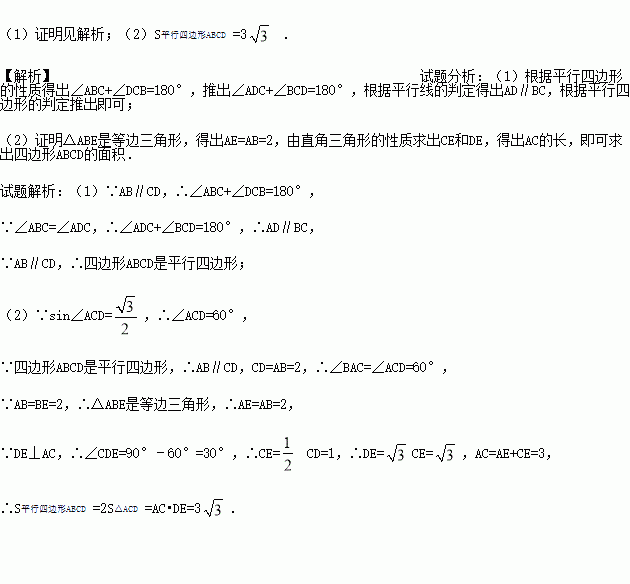 (1)求证:四边形ABCD是平行四边形;