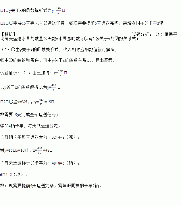 (1)运输公司平均每天运送柿子x吨,需要y天完成运输任务,写出y关于x的函数解析式;