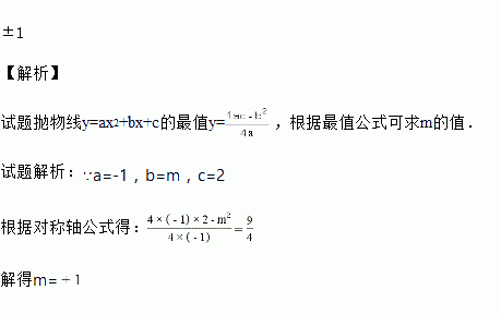 已知二次函数y=-x2+mx+2的最大值为,则m=_______.