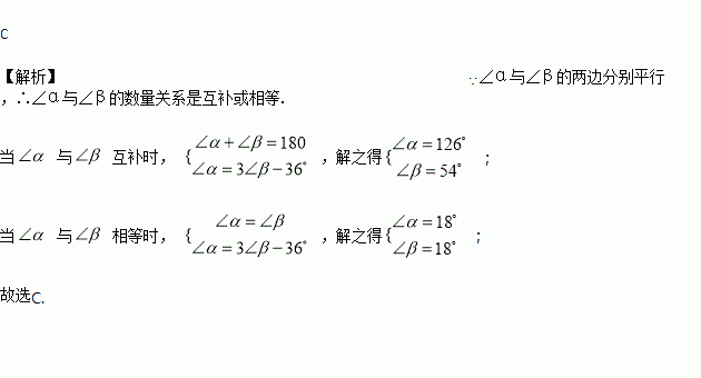 如果∠α与∠β的两边分别平行,∠α比∠β的3倍少36°,则∠α的度数是( )