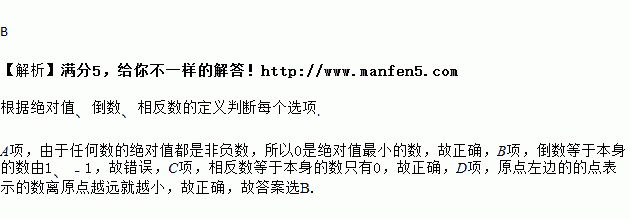 A. 绝对值最小的有理数是0 B. 倒数等于本身的数有1、、0