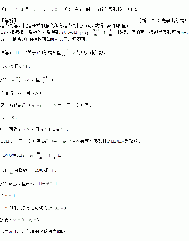 已知关于x的分式方程①和一元二次方程②中,m为常数,方程①的根为非负数.