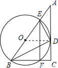 ∴BE是⊙O的直径,点O是BE的中点,连接OD(1分)