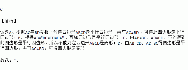 下列条件中,不能判定四边形ABCD为菱形的是( ).