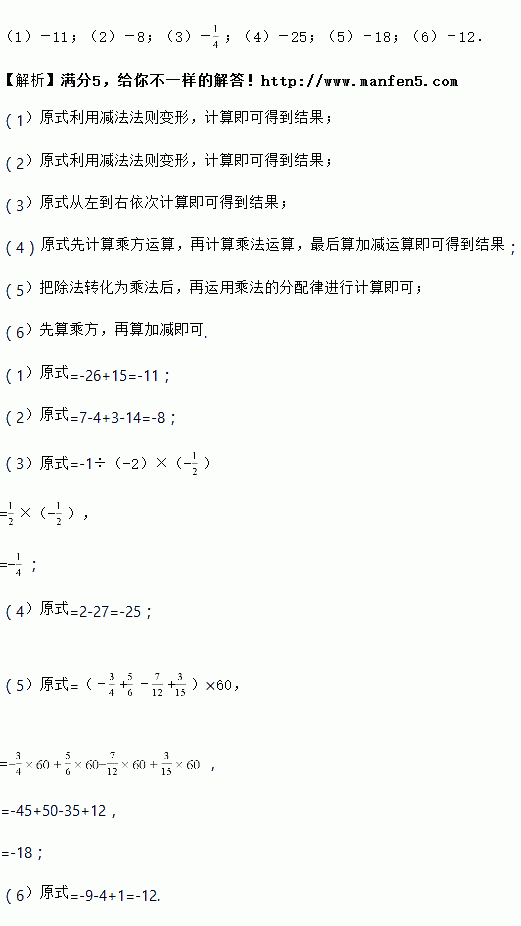 (1) -26-(-15) (2)(+7)+(-4)-(-3)-14