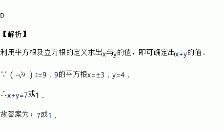 (-)2的平方根是x,64的立方根是y,则x+y的值为( )