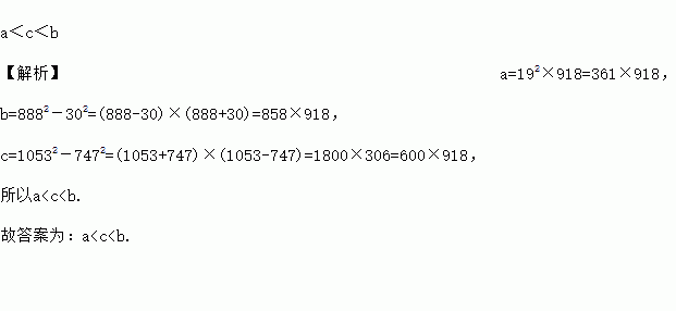 设a=192×918,b=8882-302,c=1 0532-7472,则数a,b,c按从小到大的顺序排列,结果是________________.
