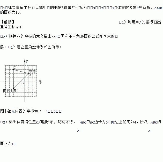 (2)若体育馆位置坐标为C(-3,3),请在坐标系中标出体育馆的位置,并顺次连接学校、图书馆、体育馆,得到△ABC,求△ABC的面积.