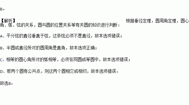 A.平分弦的直径垂直于弦 B.半圆(或直径)所对的圆周角是直角