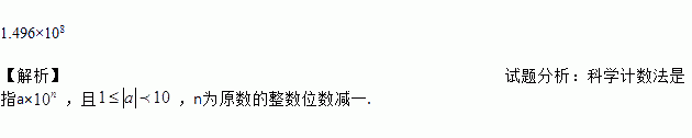地球与太阳之间的距离约为149 600 000千米,科学记数法表示为______千米.