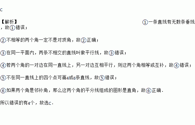 ⑥如果两个角是邻补角,那么这两个角的平分线组成的图形是直角.