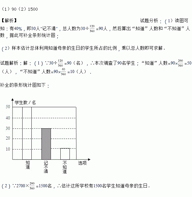(2)若全校共有2700名学生,你估计这所学校有多少名学生知道母亲的生日?