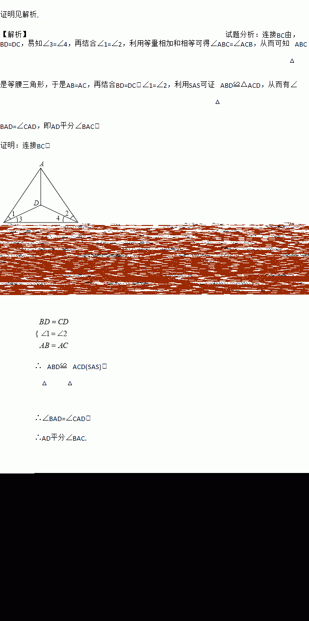 如图,BD=CD,∠B=∠C,求证:AD平分∠BAC。