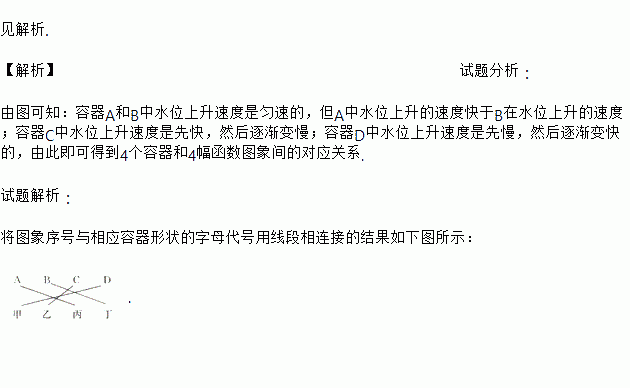 请把适当的图象序号与相应容器形状的字母代号用线段相连接.
