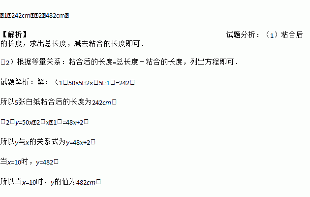 (2)高x张白纸粘合后的长度为ycm,写出y与x的关系式,并求出当x=10时,y的值.