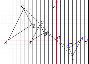 (3),连接B′O并延长,使OB″=OB′,延长A′O并延长,使OA″=OA′,C′O并延长,使OC″=OC′,连接A″B″,A″C″,B″C″,则△A″B″C″为所求,从网格中即可得出△A″B″C″各顶点的坐标.