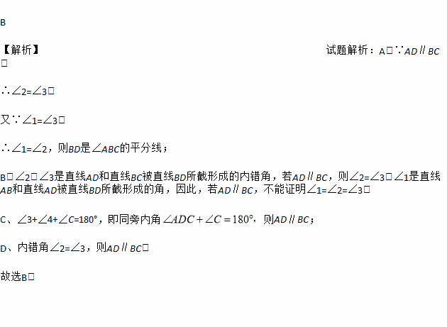 A. 若∠1=∠3,AD∥BC,则BD是∠ABC的平分线